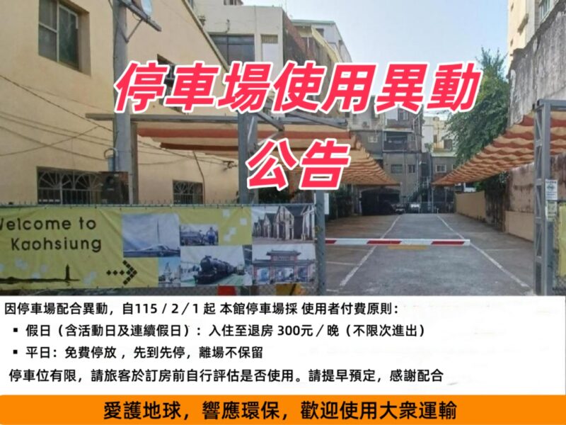 ● 本館停車場位在飯店旁,開放時間為入住當天 16:00 後,採收費預約制,規範如下...