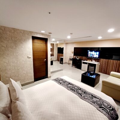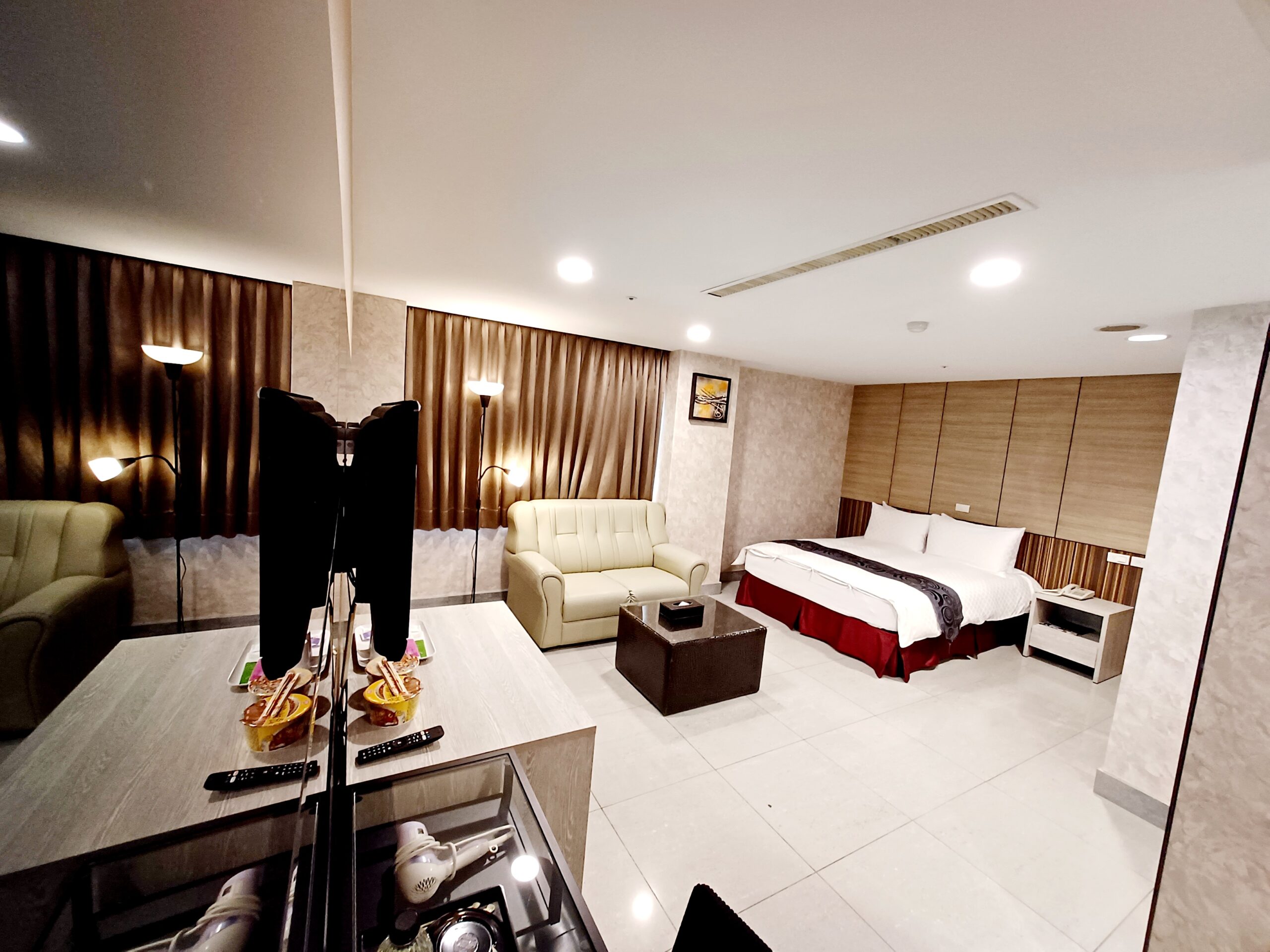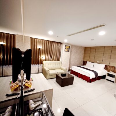 客房設備 : 免治馬桶、吹風機、wifi、冰箱、熱水壼、冷氣、液晶電視、羽絨被、羽絨枕、浴巾、毛巾、沐浴乳、洗髮精、拖鞋、礦泉水、咖啡包