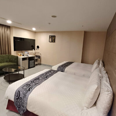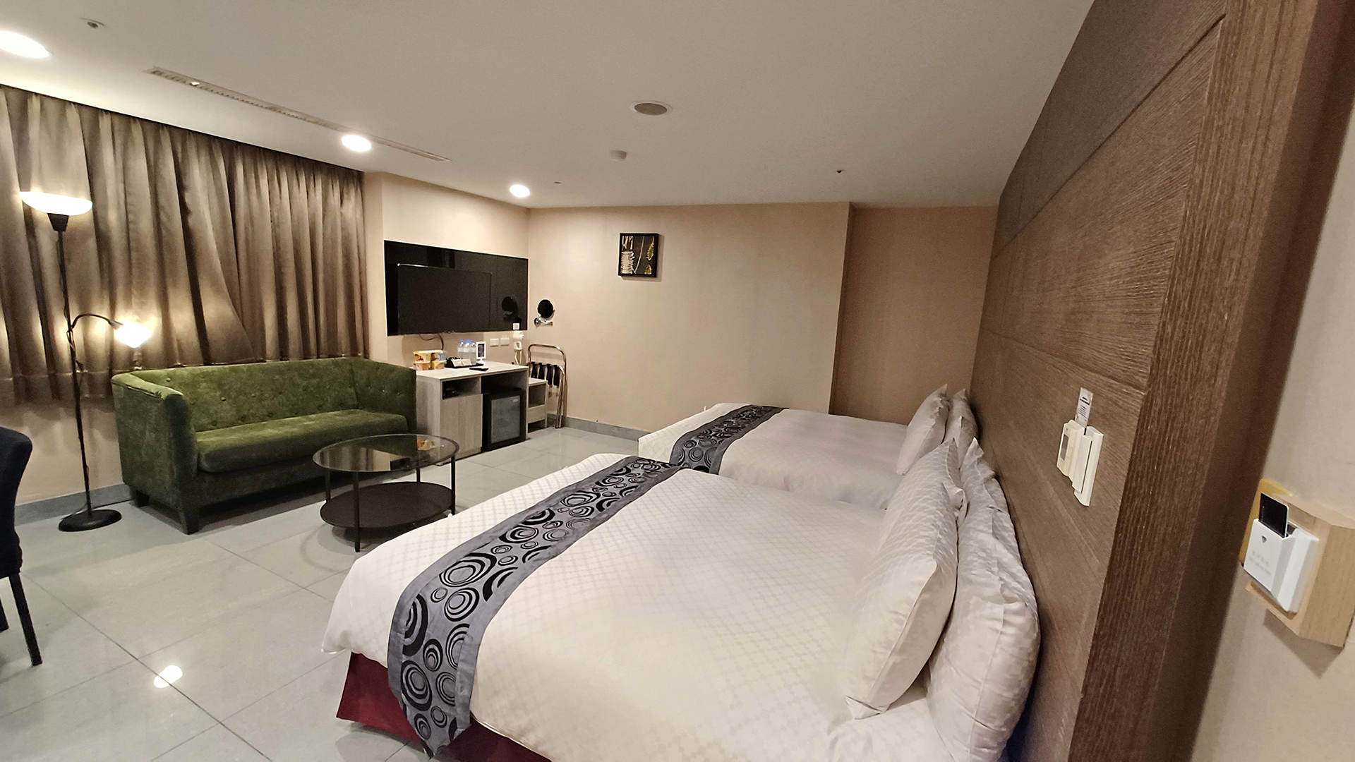 客房設備 : 免治馬桶、吹風機、wifi、冰箱、熱水壼、冷氣、液晶電視、羽絨被、羽絨枕、浴巾、毛巾、沐浴乳、洗髮精、拖鞋、礦泉水、咖啡包