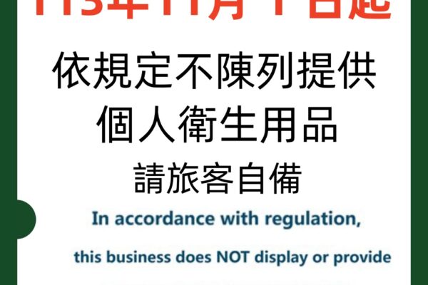 進房時間:下午4:00以後(提早到可先至櫃檯放置行李)